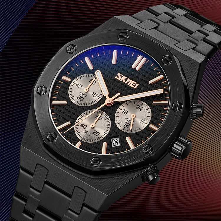 Jam Tangan Pria SKMEI Analog Men Stainless Original 9296CS ini hadir dengan design sporty dan tangguh sangat cocok untuk menemani Anda beraktifitas berolahraga. Dengan fitur-fitur seperti penunjuk tanggal, bulan, waterproof dan stopwatch. jam tangan terbuat dari bahan material stainless yang kokoh dan ringan, menambahkan kesan modis dan elegan di dalam aktivitas sehari-hari. Chrono atau Sub-dials aktif.