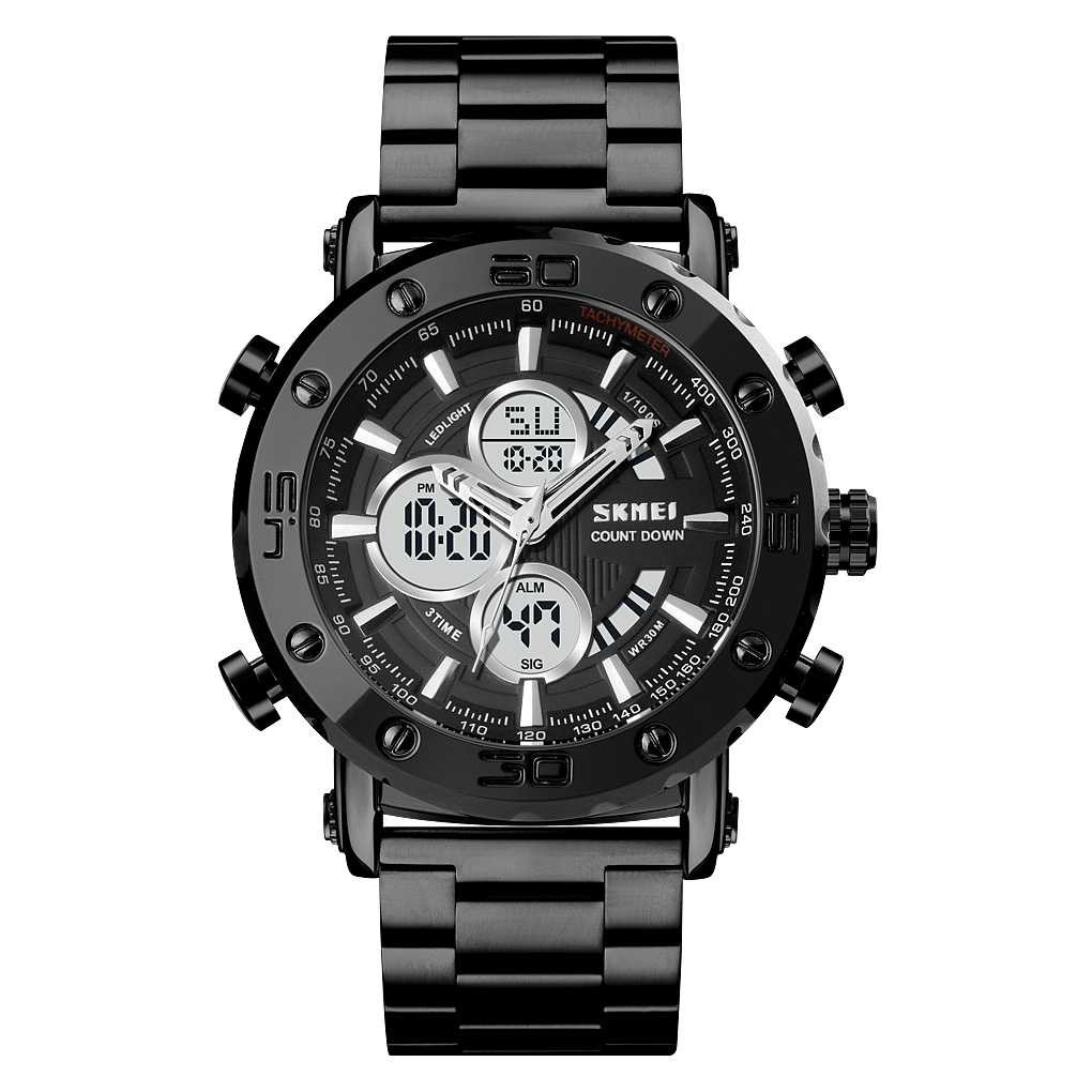Jam Tangan Pria Dual Time SKMEI Men Stainless Sport LED Original AD1636